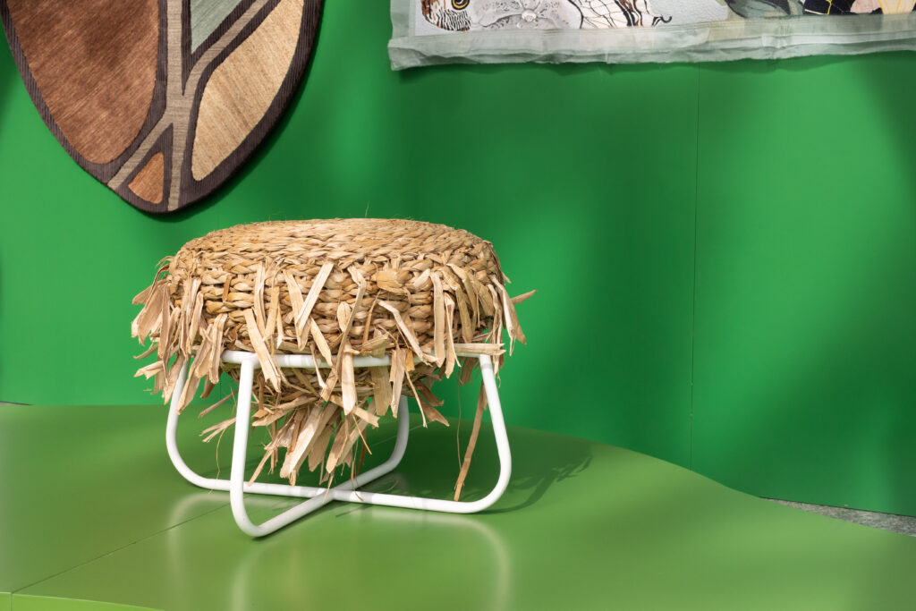 Unindo sustentabilidade, a ancestralidade do saber feito à mão com o uso de materiais industriais, Tavinho equilibra tradição e contemporaneidade nas peças da sua coleção Taboa. As criações prezam pelo respeito à essência do artesanato – em específico o alagoano – e são pensadas e elaboradas junto com as artistas, criando formas e adaptando técnicas a fim de interferir o mínimo possível nos processos originais. Todos os itens foram criados em colaboração com uma comunidade de artesãs de Feliz Deserto, cidade litorânea de Alagoas, Brasil. É de lá que elas extraem as fibras naturais de taboa, planta nativa das margens do rio, em seguidas secam e trançam a folhagem para criação de objetos que fazem parte do dia a dia da sua cultura, como cestos, bolsas e utensílios para casa. O banco Ciça desenvolvido com fibra de palha de taboa e alumínio em sua base, em uma mescla de conforto, arrojamento e autenticidade. “O nome do banco é o jeito popular de falar o nome Cícera, comum nas comunidades em que passo. Ciça representa a simplicidade e a força do povo nordestino”.