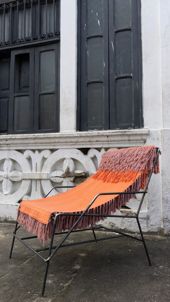 Produzida em parceria com artesãs da tecelagem do Povoado do Salgado, em Delmiro Gouveia, no Sertão alagoano, a peça resgata a essência das tradicionais espreguiçadeiras e o hábito de levar as cadeiras para a calçada ao entardecer. Mais do que um assento, a Poltrona Prosa celebra o encontro, a conversa e o tempo desacelerado — um convite a reviver o simples prazer de prosear.