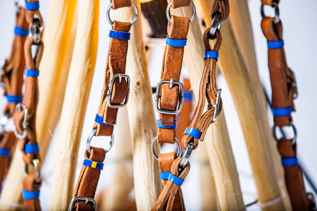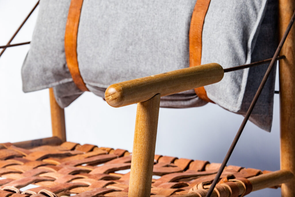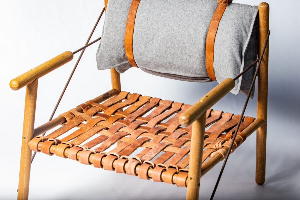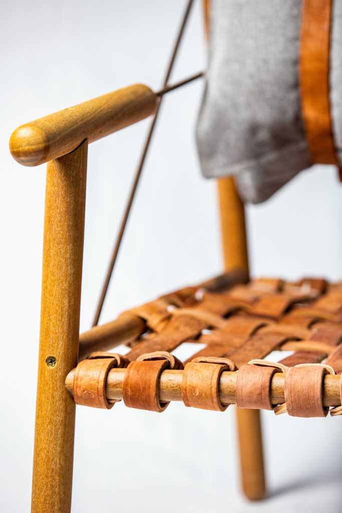 A poltrona Arreio é uma peça única, produzida com peças de couro encontradas em feiras livres no sertão de Alagoas. A sua estrutura é feita a partir de arreios de montaria de cavalo em couro, o que confere uma resistência e durabilidade incomparáveis. A madeira cumaru é o material utilizado para a confecção da base da poltrona, o que a torna ainda mais robusta e imponente. As hastes de aço utilizadas para dar forma à peça são cuidadosamente trabalhadas e integradas à estrutura da poltrona, garantindo estabilidade. O couro utilizado na confecção da poltrona Arreio apresenta um aspecto rústico e marcante, com suas imperfeições e texturas naturais. A peça é repleta de detalhes que denotam a sua origem e história, fazendo com que cada exemplar seja único e especial. As almofadas são feitas em tecido de linho, o que confere uma harmonia perfeita ao conjunto. Além disso, a poltrona é uma homenagem à cultura do sertão de Alagoas e aos seus artesãos, que transformam materiais aparentemente simples em uma verdadeira peça de design.