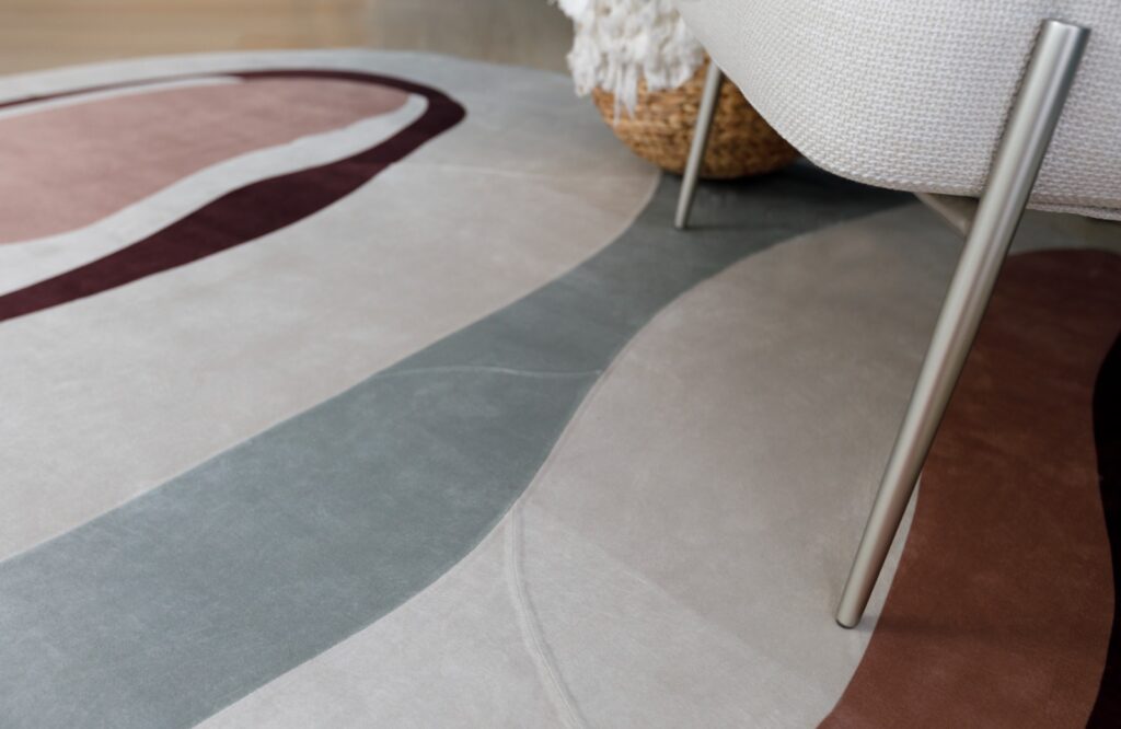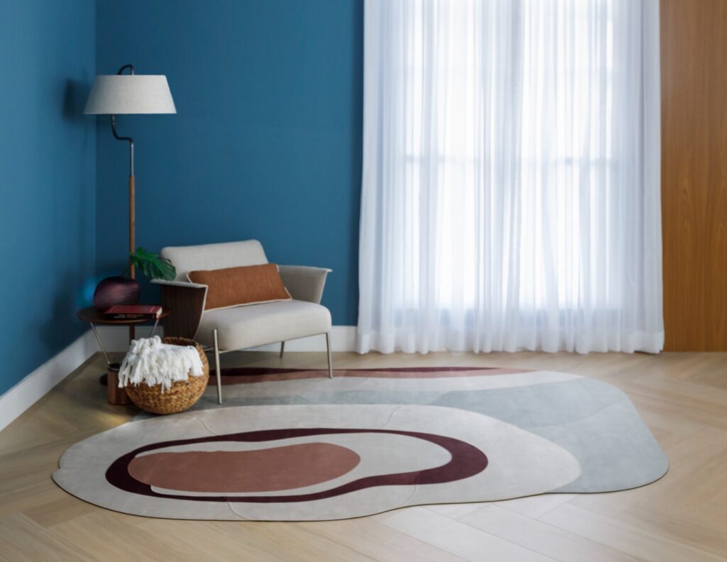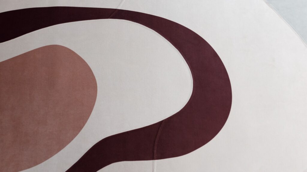 A composição do tapete remete a uma vista aérea, quase cartográfica, onde a ilha e o curso do rio se revelam de maneira abstrata e sofisticada. Essa leitura transforma o objeto em uma peça de design autoral que vai além da função, trazendo consigo narrativa, identidade e pertencimento. O resultado é um tapete que carrega a essência do território brasileiro, reinterpretado com elegância contemporânea.