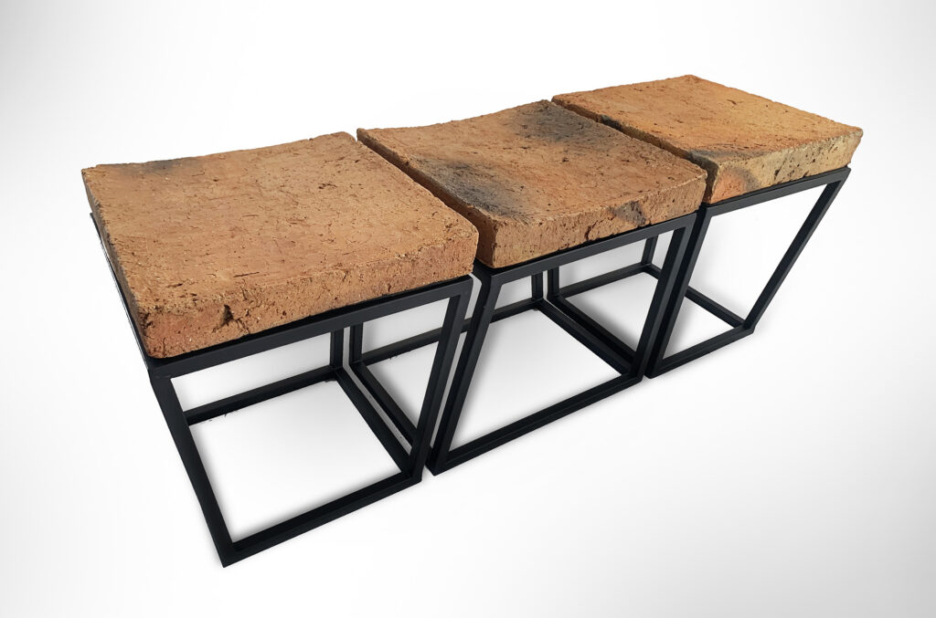 O Banco Barro nasce como um encontro entre saberes, resultado da cocriação entre o designer Tavinho Camerino e João Carlos, filho do mestre João das Alagoas, na cidade de Capela. Pelas mãos do artesão, o projeto ganha materialidade e alma, traduzindo um diálogo sensível entre o fazer contemporâneo e a tradição local. A peça explora o contraste entre o aço — preciso, industrial — e o barro batido — orgânico, ancestral — criando um equilíbrio potente entre matéria, tempo e território.
